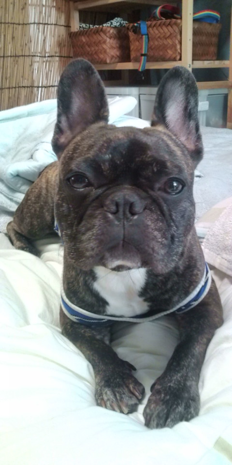 トラ模様のフレンチブルドッグ。