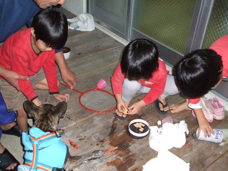 「キャー!こわい~!!」と逃げ回るおちびちゃんたち。