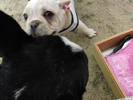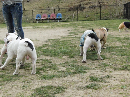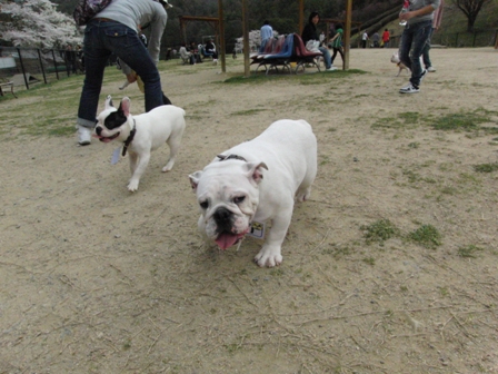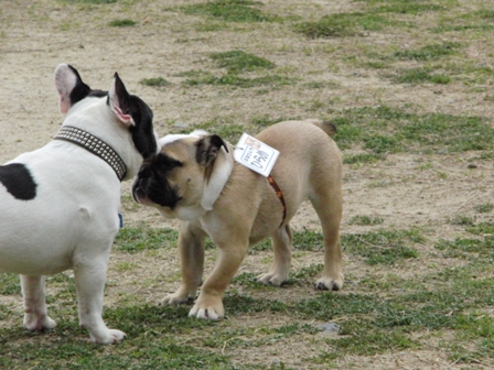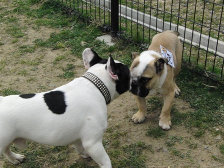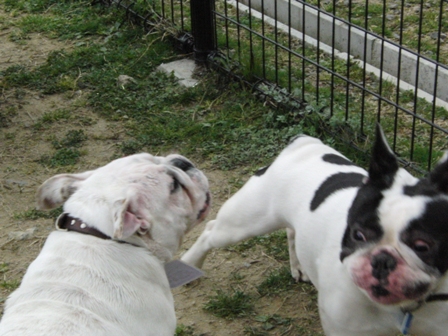 白いブルは8カ月で茶色いブルは4カ月のパピーなんよぉ!!