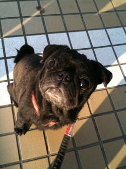 迷子の黒パグちゃん(推定6才・女子)を