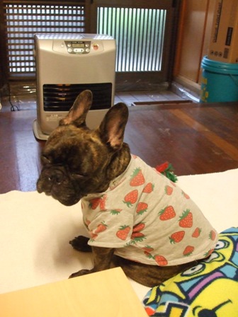 ファンヒーターの前に陣取って