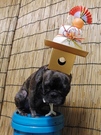 500gぐらいの鏡餅のおもちゃを頭に乗せる!!!