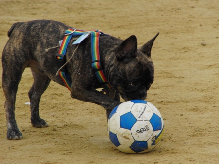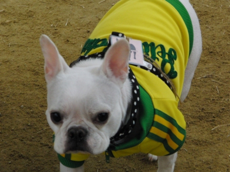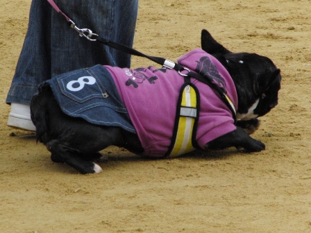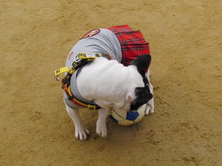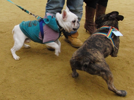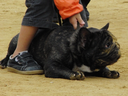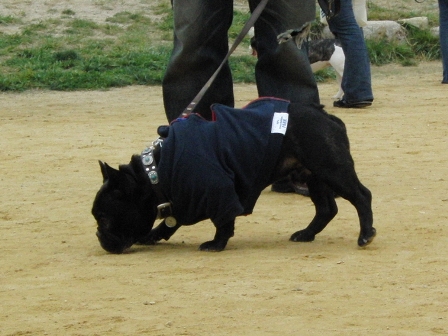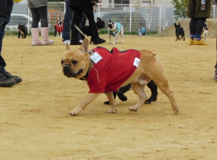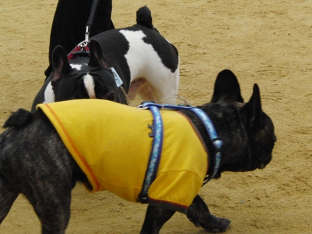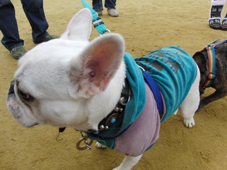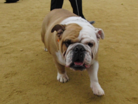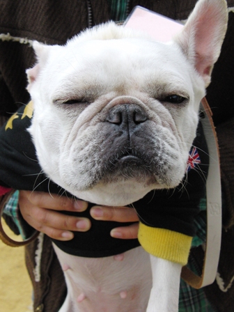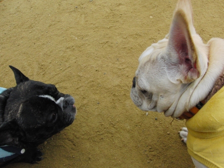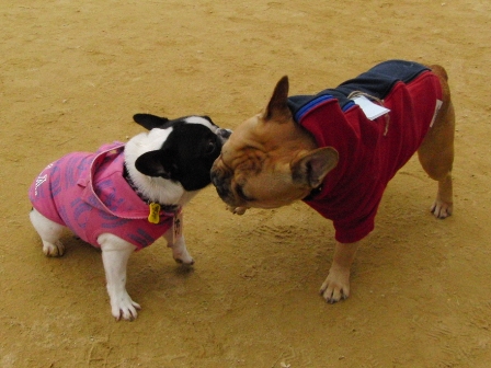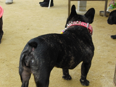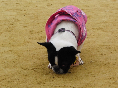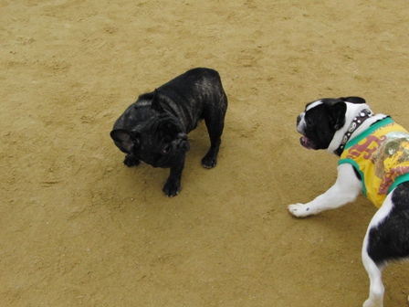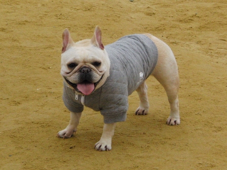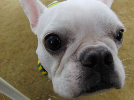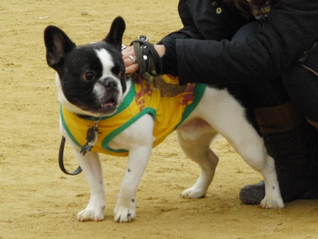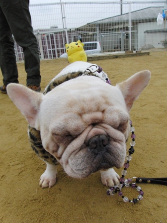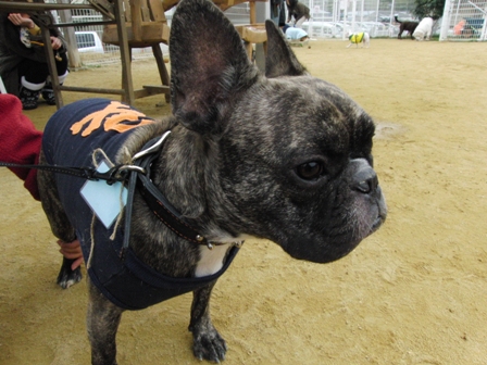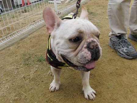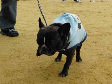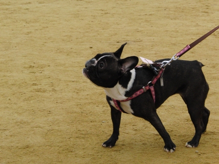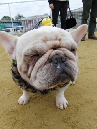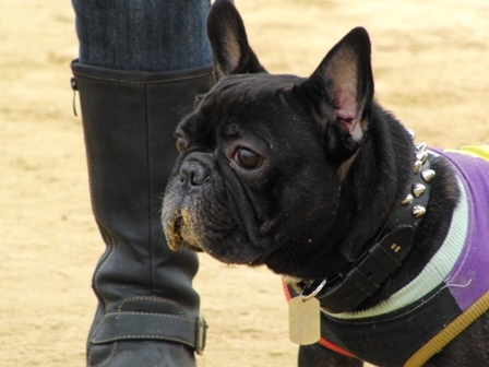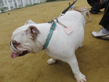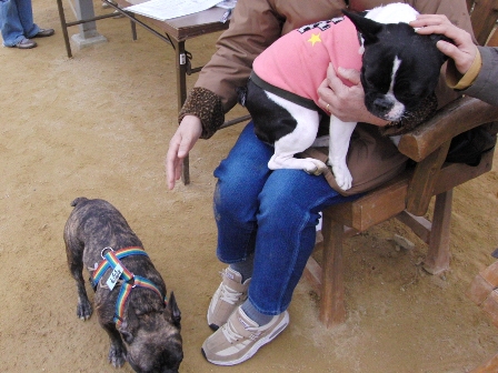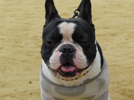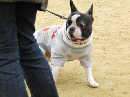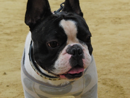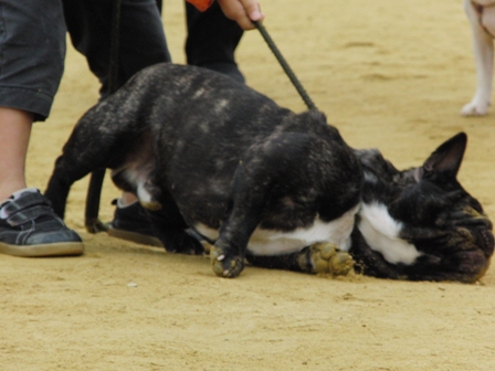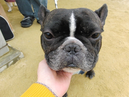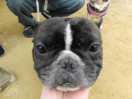ねぎくんのストーカーしていた土で汚い顔になってたブリンドルの小鉄。