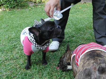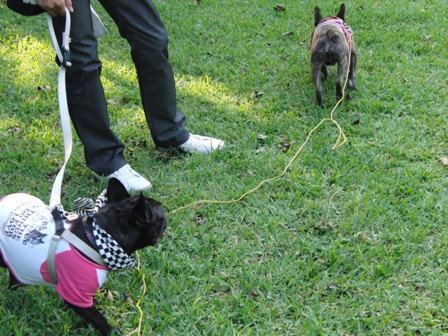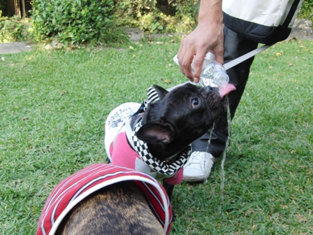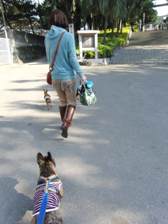 まりもパパンのたっちゃんは2ブヒとお庭でお散歩。